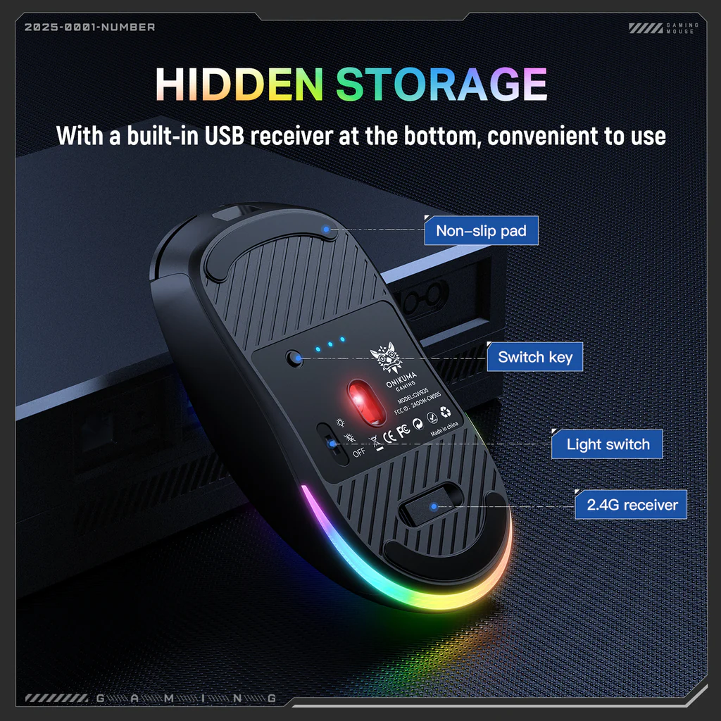ONIKUMA CW930 RGB Tri-Mode Wireless Gaming Mouse